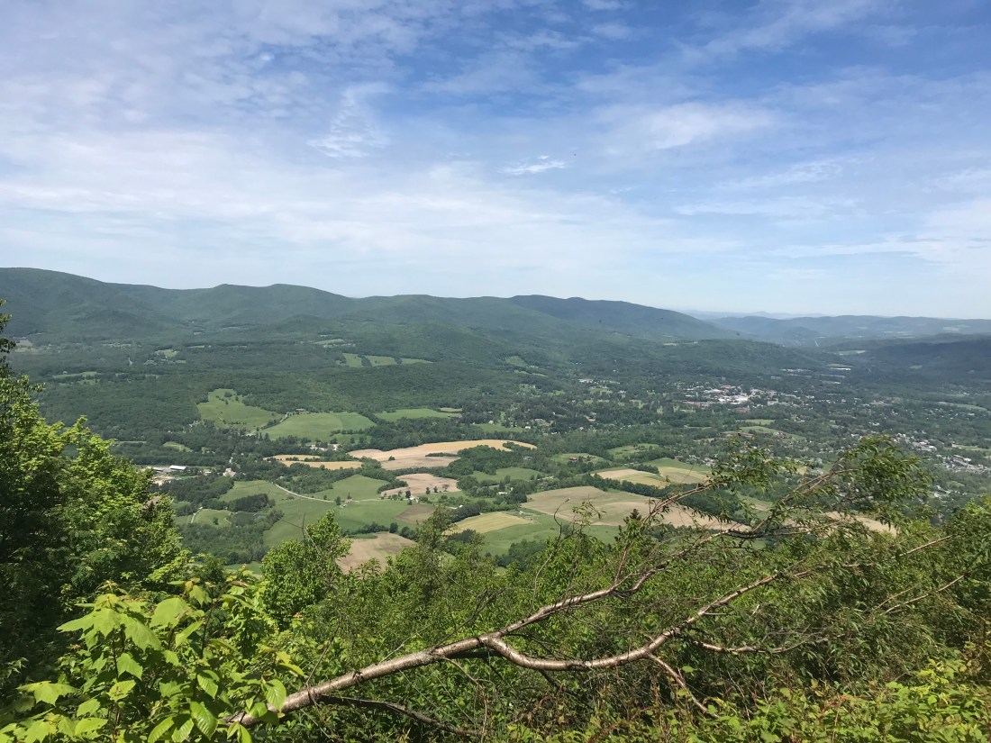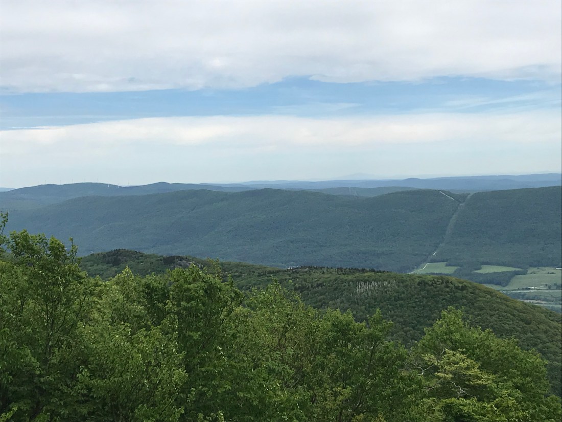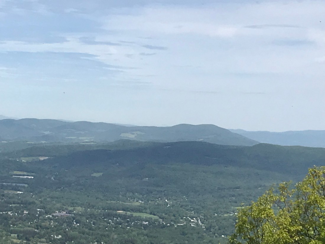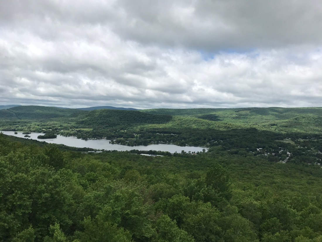 As we pass the town and head back into the woods we have a long upward journey to get us back up into the mountains. As lunchtime nears we reach our first peak of Prospect Mountain. We stopped to enjoy our lunch with a hard earned view of the town below.