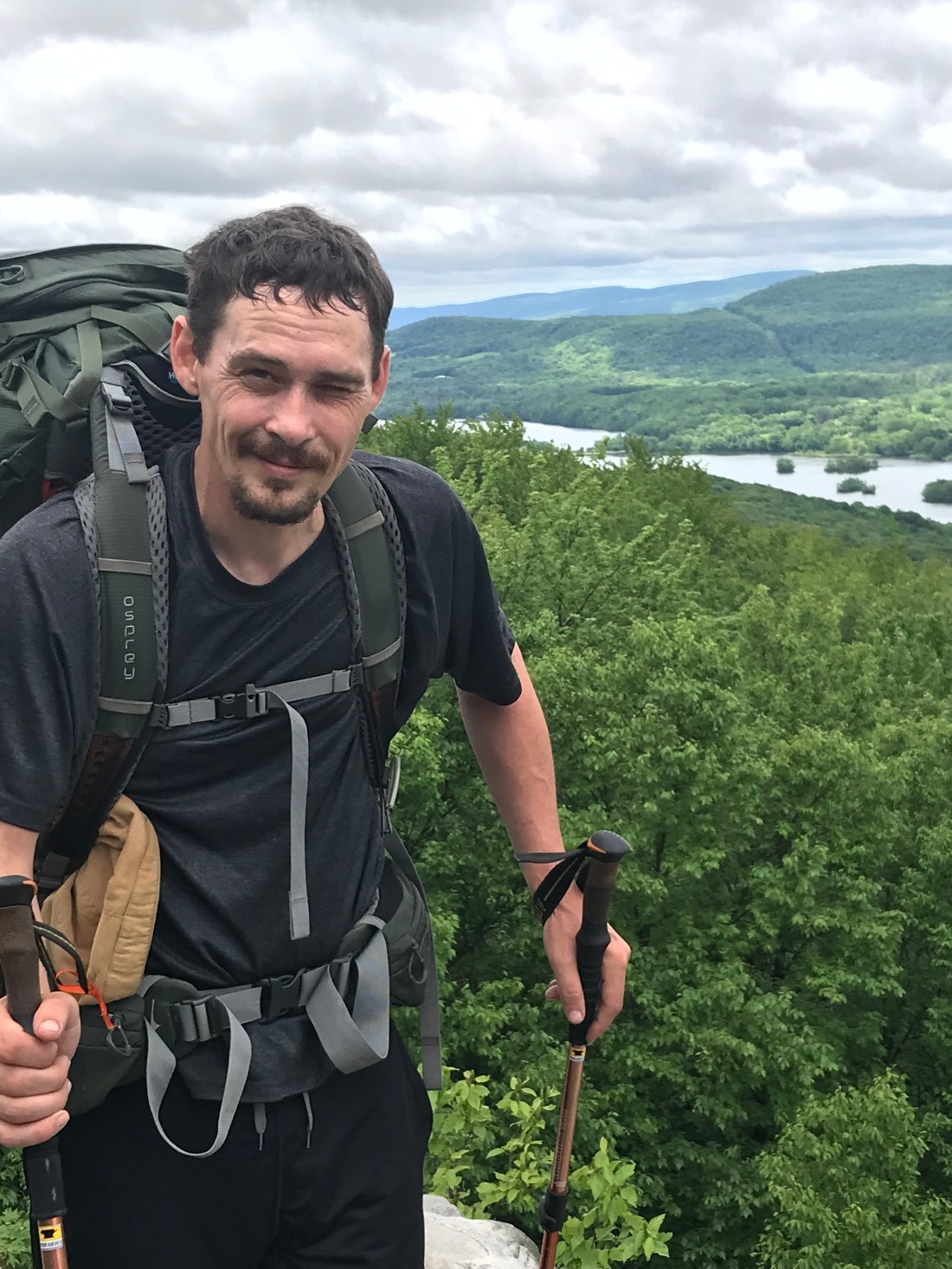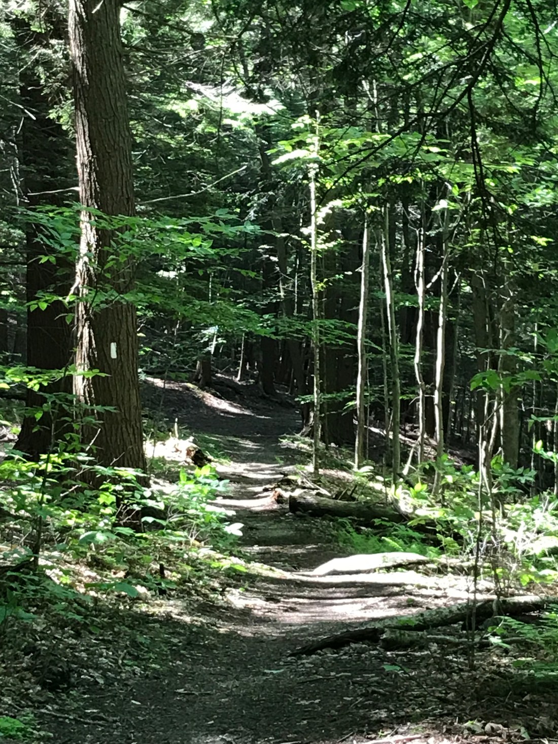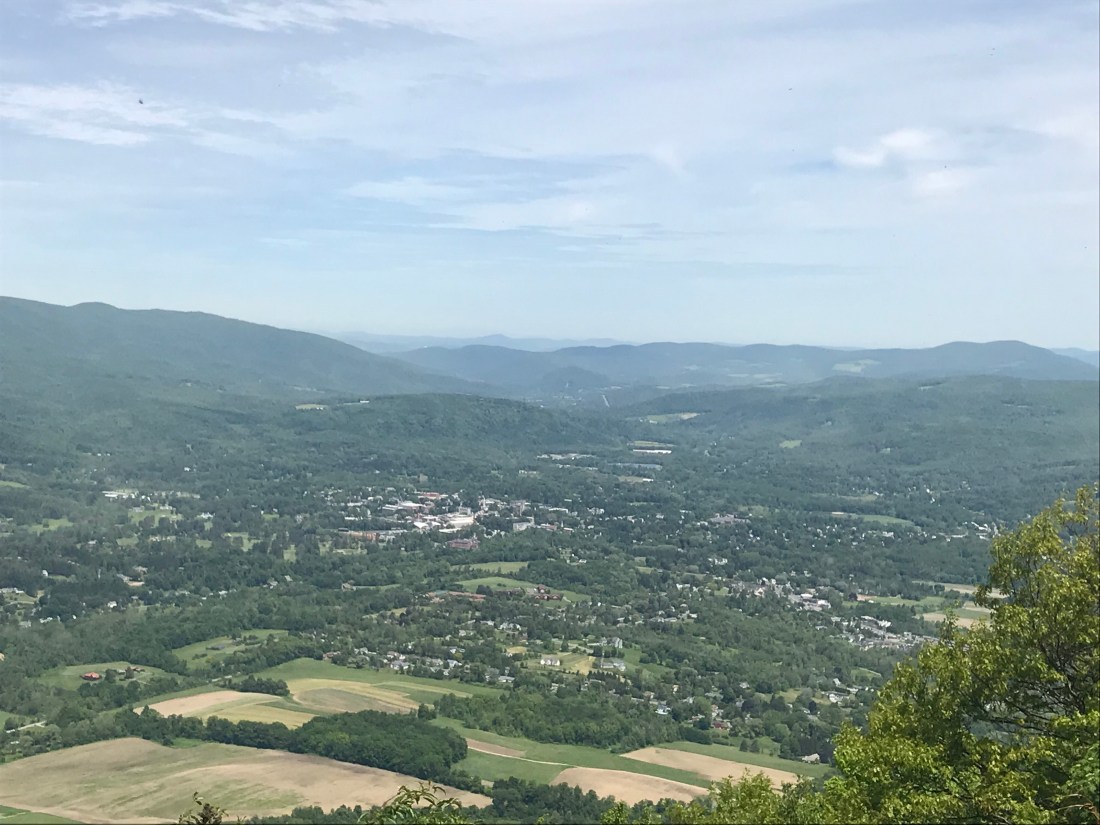 As we pass the town and head back into the woods we have a long upward journey to get us back up into the mountains. As lunchtime nears we reach our first peak of Prospect Mountain. We stopped to enjoy our lunch with a hard earned view of the town below.