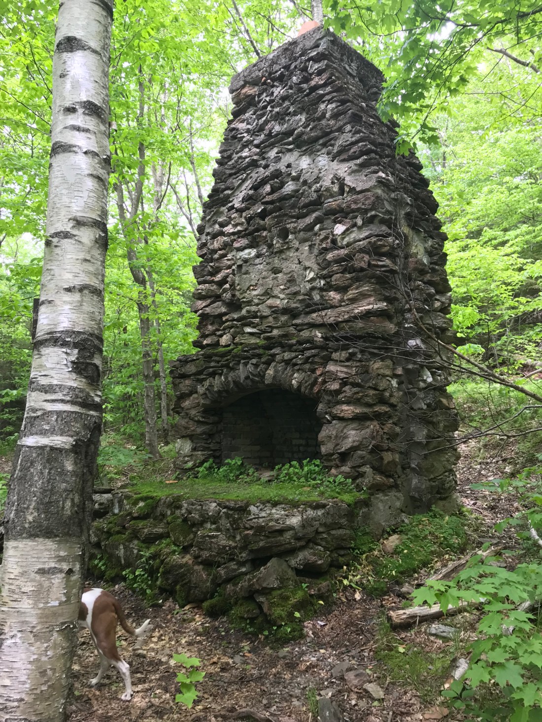 Between the peaks though we were running low on our water supply and it’s a warm day so we got lucky to find a side trail that led us down .3 of a mile where we could resupply. We hate doing extra miles, but you don’t want to chance not having water in the mountains. Down the side trail we came upon a huge chimney with a fireplace in the middle of nowhere. I wonder what this may have looked like when the home it supplied was here.