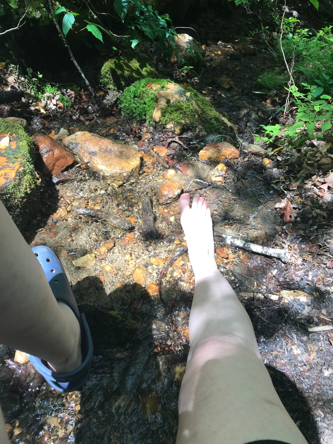 Getting on the trail that morning we had 2 water crossings to forge. Not a big river or anything, but just enough to have to take our shoes off for our crocks.