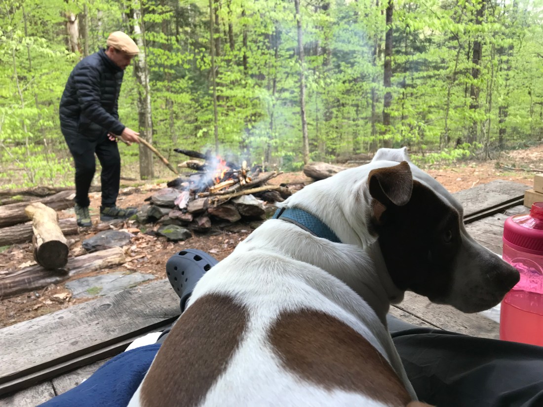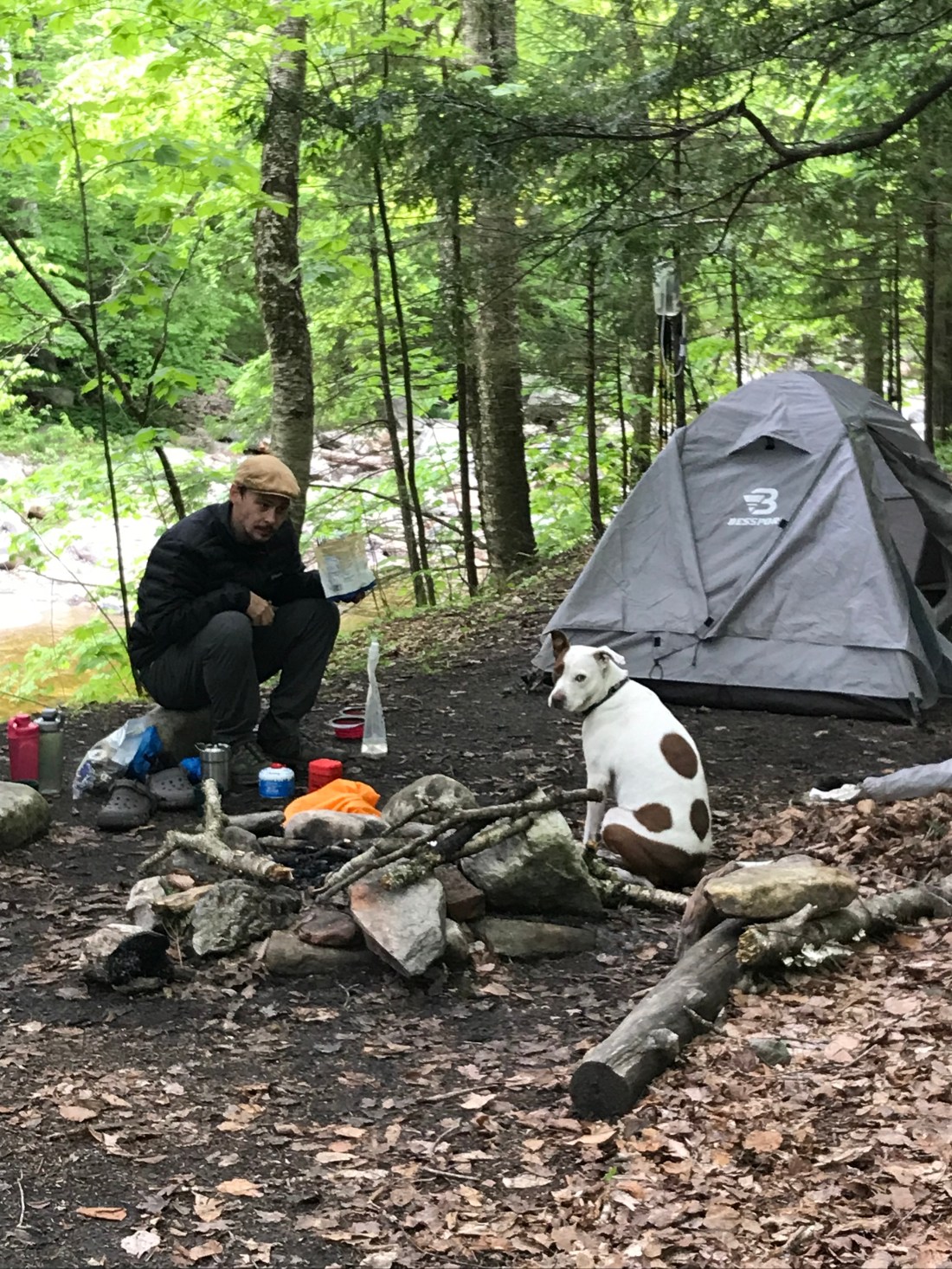 We made it to the pond and gave Meadow a swim, but as we prepared to find our place to sleep there that night we saw a large group of kids coming in to stay for the night. We don’t mind being around others at night, it’s normal to shelter with at least a few others or so, but kids are usually noisy. We push on a few more miles to see if the next shelter is free. Once we got there it too had another hiker staying and it was a small shelter. There’s several tent sites around the river just ahead so we decided to finally use the tent we’ve been caring around.
