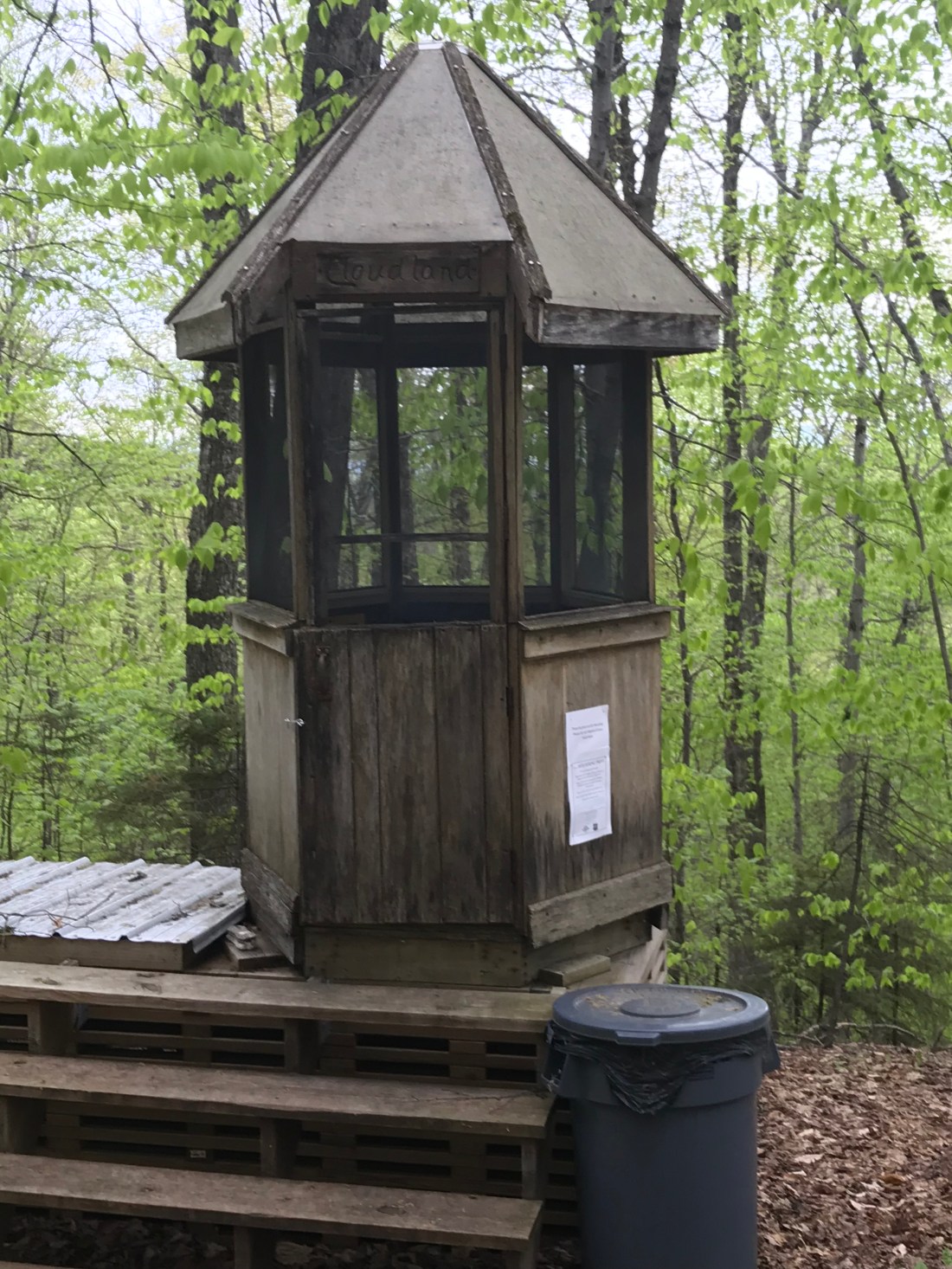 Our last peak was the top of Bromley Mt. and if we wanted to stay there there’s a ski patrol hut we could have stayed in. It was a little stinky, like us, so we pushed on to town.
