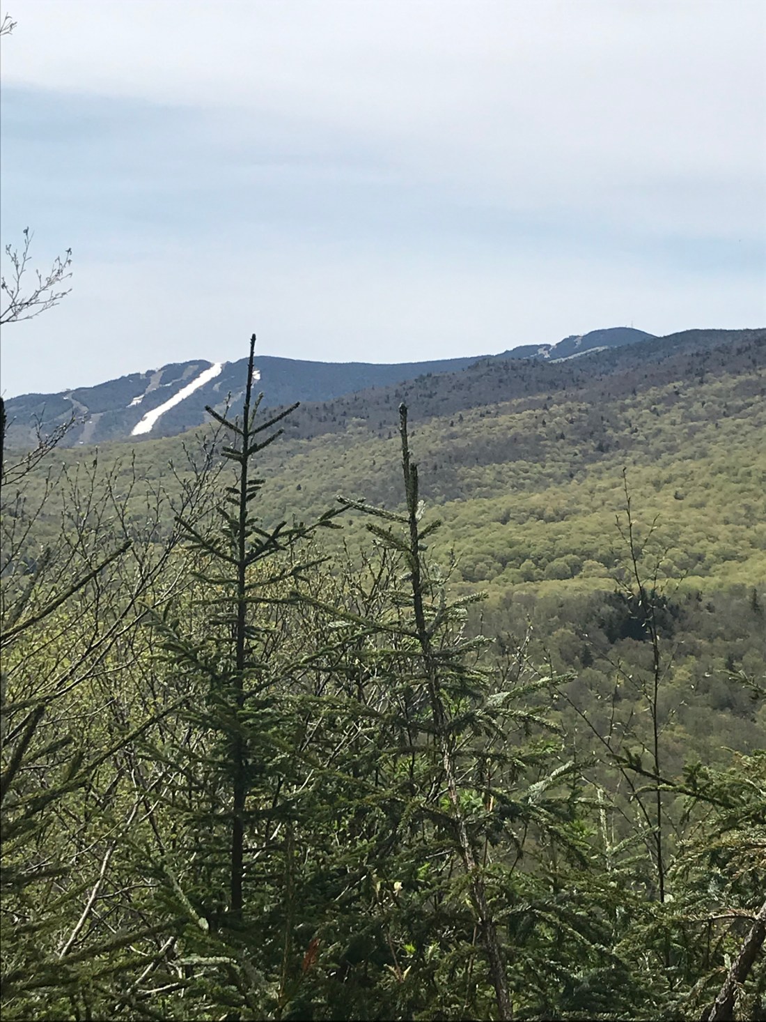 We left town May 29, after a big breakfast to fuel our journey. The trail was a straight up from town before getting back to the Appalachian Trail again. Once we got on the AT the trail settled down and was more gradual up until we got to Killington Mt. This will be our biggest peak in VT and one we’ve skied on together back when we were dating as a young couple.