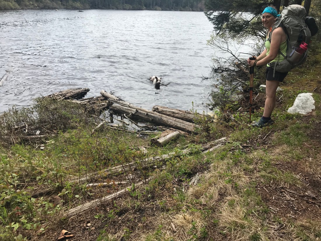 We decided we were going to stay at a pond shelter up ahead about 9 miles for Meadow. She lives to swim so we really wanted her to have some fun that day. Our day started rough with 2 big peaks then the trail settled down and was very pleasant in the afternoon. Meadow seemed to be happier once we got going and we couldn’t wait to surprise her with a nice swim.
